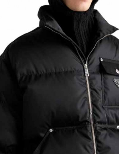25년 프라다 삼각로고 리나일론 다운 블랙 패딩 1022