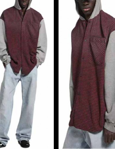 25년 발렌시아가 레드체크 플란넬 및 그레이 드라이 후디드 하이브리드 셔츠 1124