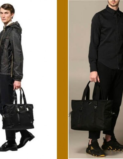 프라다 로고 리나일론 버클 블랙 토트백
