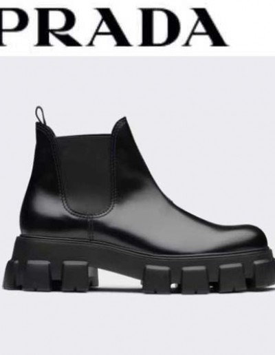 프라다 모놀리스 브러쉬드 레더 첼시 부츠 블랙 0124