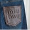 미우미우 여성 브라운 레더 패치 와이드 데님 팬츠