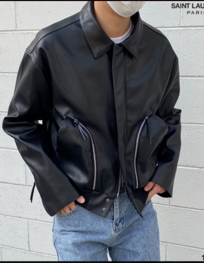 입생로랑 아웃라인 지퍼 레더자켓