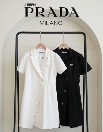 프라다 언발란스 랩 플리츠 원피스