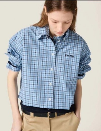 25년 미우미우 자수로고 체크 포플린 셔츠