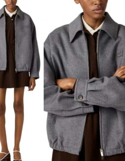 25년 미우미우 자수로고 캐시미어 터틀 집업 재킷 0915
