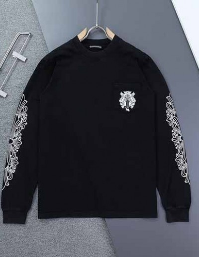 크롬하츠 대거포켓 플로랄 롱 슬리브 블랙 긴팔 티셔츠