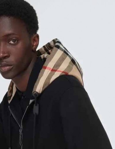 버버리 체크 후디 코튼 지퍼 집업