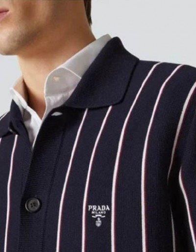 프라다 로고 Striped 버튼 업 Kint 카디건
