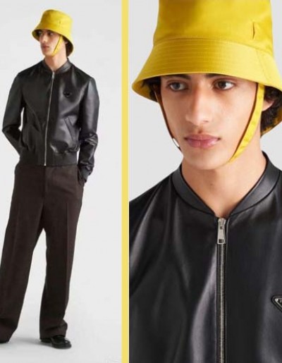 프라다 삼각로고 레더 블루종 블랙재킷